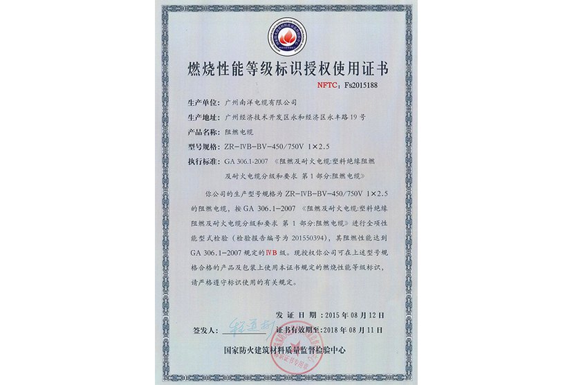 ISO質量處理體系、環境處理體系,作業健康安全處理體系、計量保證體系認證企業,具有廣東省電纜作業僅有的工程技能研討開發中心,南洋電纜具有多項專利并屢次參加國家標準及作業標準的擬定,不斷立異開發新產品。35kV及以下電纜產品取得全國工業產品出產許可證,電線產品通過我國質量認證中心CCC認證,110kV電纜通過我國電力企業聯合會產品判定,220kV電纜體系通過預判定實驗;500kV電纜體系通過型式實驗和荷蘭凱馬(KEMA)認證,加添華南地區500kV電纜產品的空白,可替代進口產品,電纜制造技能抵達世界搶先水平。
